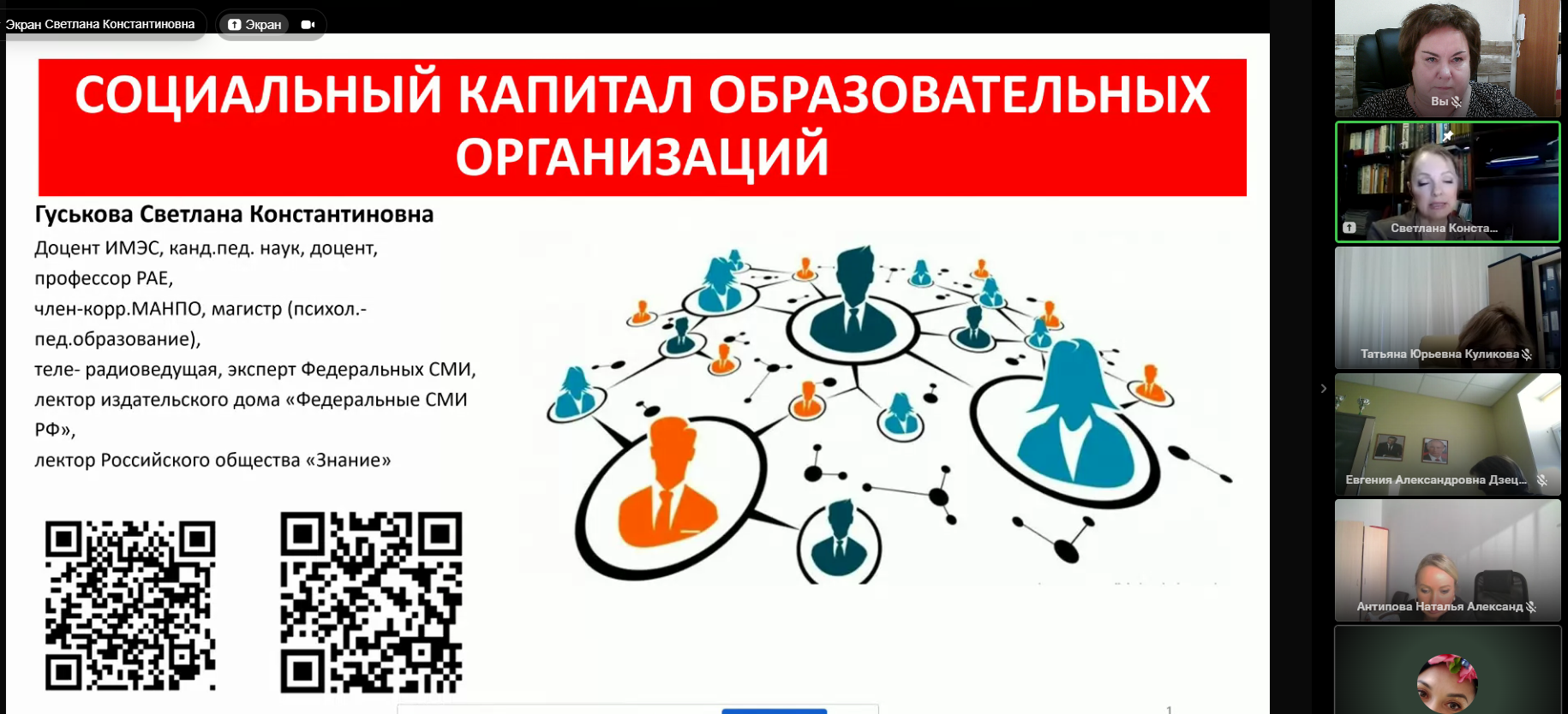 Светлана Константиновна рассказала о самом понятии «социальный капитал», его компонентах, действиях руководителя по созданию социального капитала в своей организации для целесообразного распределения кадровых ресурсов. Спикер дала рекомендации по выстраиванию команды единомышленников, по использованию возможностей тимбилдинга. Светлана Константиновна обозначила ведущую роль руководителя (лидера) в процессах формирования эффективной команды.