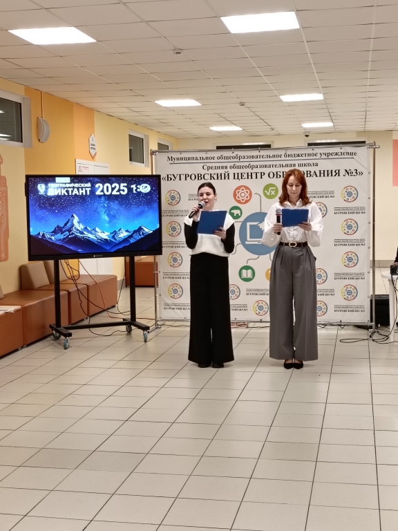 Общеобразовательные учреждения Всеволожского муниципального района приняли активное участие в Диктанте. Администрация МОБУ «СОШ «Бугровский ЦО №3» совместно с учителями географии и обучающимися школы организовали и провели праздничное открытие и квест для участников Диктанта. Квест состоял из четырех станций: